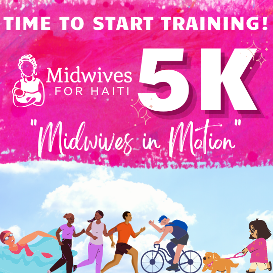 We are also actively seeking sponsors for our 5K. If you own a small business or would like to honor an individual, group or institution on the tee shirt, our website, and social media, please reach out to me at executive@midwivesforhaiti.org. I would be delighted to share details. See you out there!