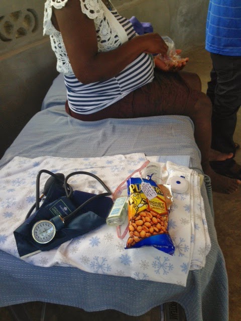 We arrived to find that the house and church which was to be used as the mobile clinic site was locked up, with no way to access it. Women and babies had already lined up, waiting on our arrival and anticipating to be seen. Something so trivial as having no access to the building was not going to make us skip a beat. These women and babies needed to be seen. A couple midwives walked around the property and found a wooden picnic bench. This would be where the women would sit and wait for their turn to be seen. There was a permanent, cement table placed in the center of the shaded veranda, where the midwives would then make a makeshift pharmacy and urine dipping station. Meanwhile, someone set up the portable exam table that we had brought along with us. A backpack strapped to my back, a doppler on my waistband, stethoscope around my neck, I placed my measuring tape, doppler gel, and blood pressure cuff on the exam table to make my “exam room.” A basic set up with minimal supplies, out in the middle of nowhere Haiti, and we were equipped to save a life by way of preventative care, education, and screening.
